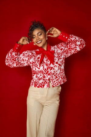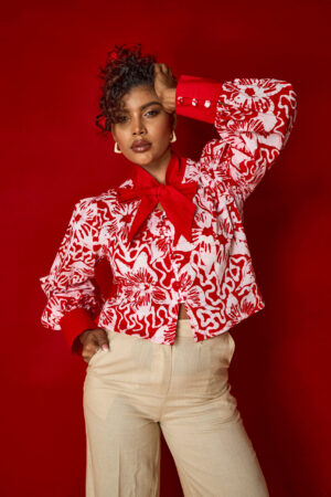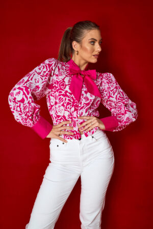 Smart meets stylish with this tailored-fit French-inspired top, featuring a chic bow at the neckline for an extra touch of elegance.